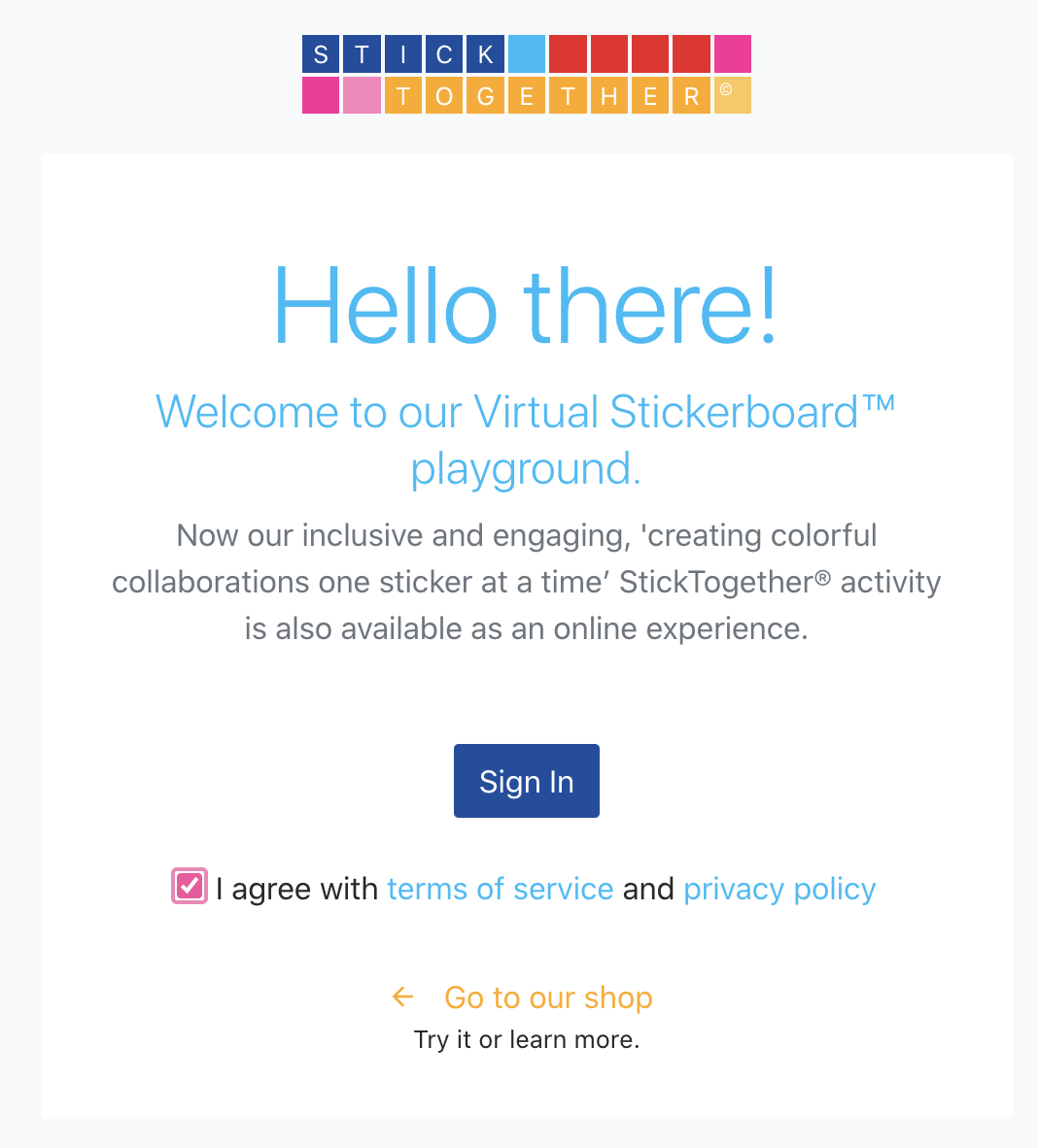 Once you go to this link in your email, you will login to the Virtual Stickerboard site.